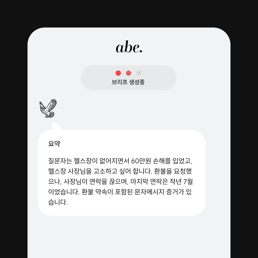 "에이브가 생각보다 꼼꼼하게 물어봐줘서 사실 관계 파악도 잘 됐어요. 원만하게 조정할 수 있었습니다."
