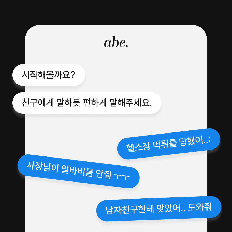 친구에게 말하듯 에이브.에게 털어놔보세요.